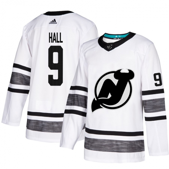 >Men's Adidas New Jersey Devils #9 Taylor Hall White 2019 All-Star Game Parley Authentic Stitched NHL Jersey