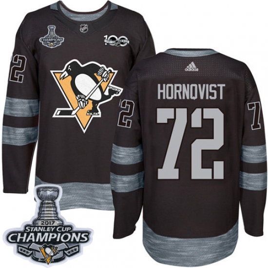 Home>NHL>Pittsburgh Penguins>Patric Hornqvist>Men's Adidas Pittsburgh Penguins #72 Patric Hornqvist Authentic Black 1917-2017 100th Anniversary 2017 Stanley Cup Champions NHL Jersey