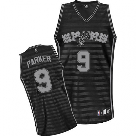 Home>NBA>San Antonio Spurs>Tony Parker>Men's Adidas San Antonio Spurs #9 Tony Parker Authentic Black/Grey Groove NBA Jersey