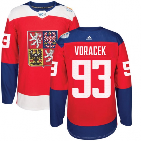 Home>NHL>Team Czech Republic>Jakub Voracek>Men's Adidas Team Czech Republic #93 Jakub Voracek Premier Red Away 2016 World Cup of Hockey Jersey