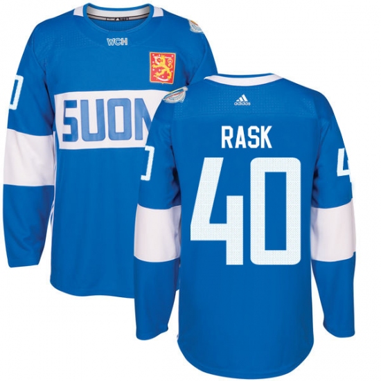 Men's Adidas Team Finland #40 Tuukka Rask Premier Blue Away 2016 World Cup of Hockey Jersey