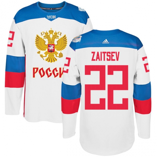 Home>NHL>Team Russia>Nikita Zaitsev>Men's Adidas Team Russia #22 Nikita Zaitsev Authentic White Home 2016 World Cup of Hockey Jersey