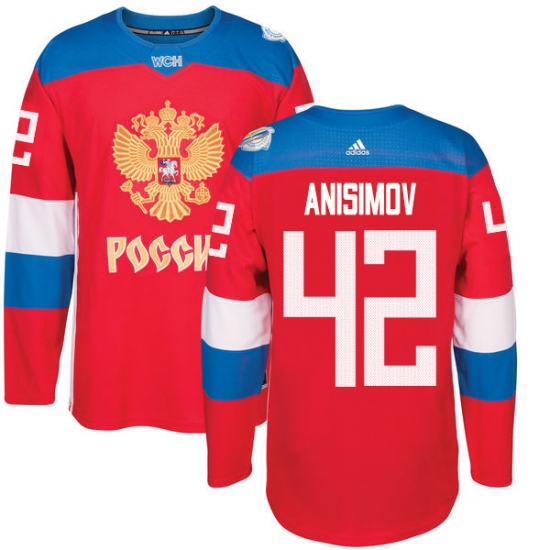 Home>NHL>Team Russia>Artem Anisimov>Men's Adidas Team Russia #42 Artem Anisimov Authentic Red Away 2016 World Cup of Hockey Jersey
