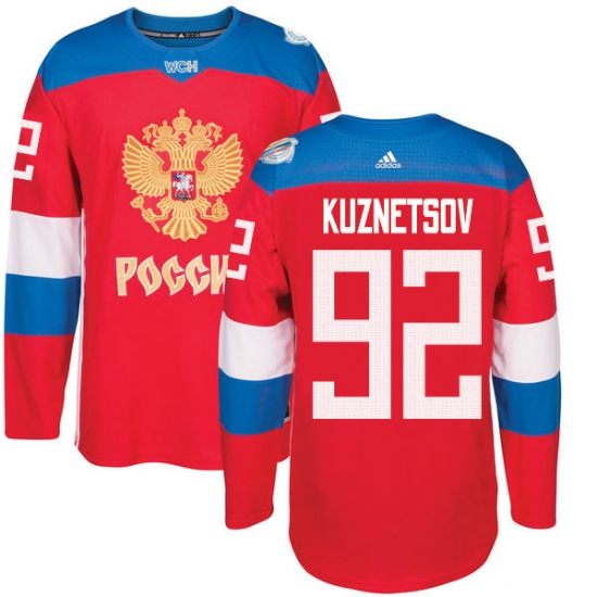 Men's Adidas Team Russia #92 Evgeny Kuznetsov Premier Red Away 2016 World Cup of Hockey Jersey