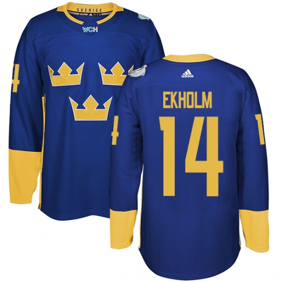 Home>NHL>Team Sweden>Mattias Ekholm>Men's Adidas Team Sweden #14 Mattias Ekholm Authentic Royal Blue Away 2016 World Cup of Hockey Jersey