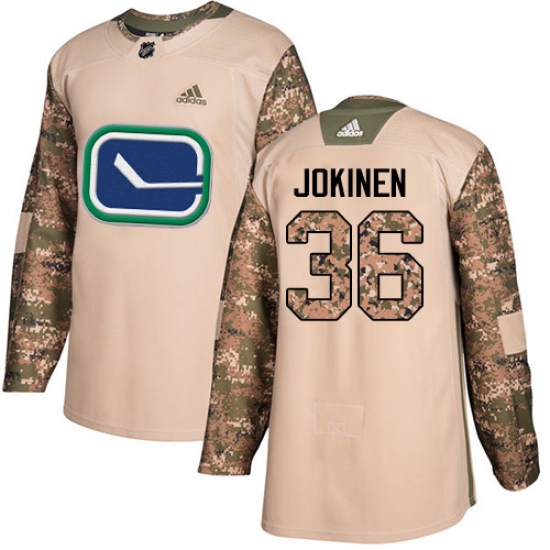 >Men's Adidas Vancouver Canucks #36 Jussi Jokinen Authentic Camo Veterans Day Practice NHL Jersey
