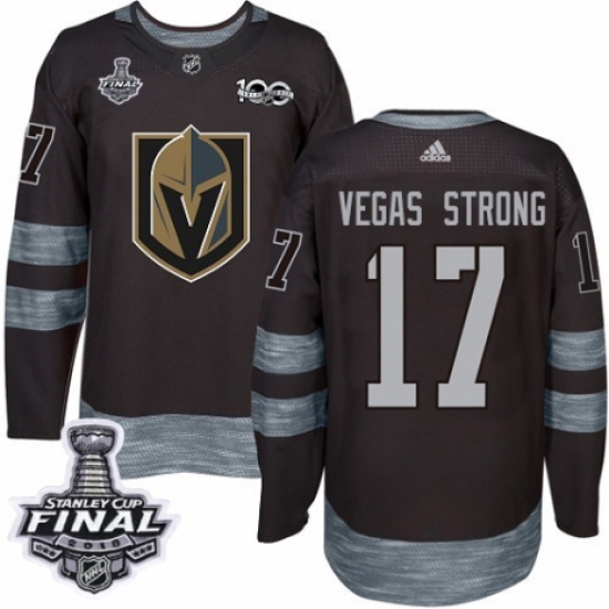 Men's Adidas Vegas Golden Knights #17 Vegas Strong Authentic Black 1917-2017 100th Anniversary 2018 Stanley Cup Final NHL Jersey