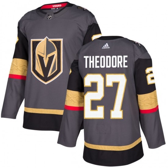 Home>NHL>Vegas Golden Knights>Shea Theodore>Men's Adidas Vegas Golden Knights #27 Shea Theodore Authentic Gray Home NHL Jersey