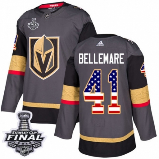 Men's Adidas Vegas Golden Knights #41 Pierre-Edouard Bellemare Authentic Gray USA Flag Fashion 2018 Stanley Cup Final NHL Jersey