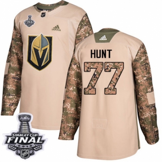 >Men's Adidas Vegas Golden Knights #77 Brad Hunt Authentic Camo Veterans Day Practice 2018 Stanley Cup Final NHL Jersey