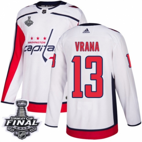 Men's Adidas Washington Capitals #13 Jakub Vrana Authentic White Away 2018 Stanley Cup Final NHL Jersey