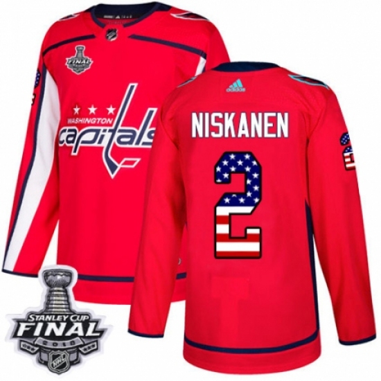 Men's Adidas Washington Capitals #2 Matt Niskanen Authentic Red USA Flag Fashion 2018 Stanley Cup Final NHL Jersey