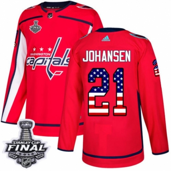 Men's Adidas Washington Capitals #21 Lucas Johansen Authentic Red USA Flag Fashion 2018 Stanley Cup Final NHL Jersey