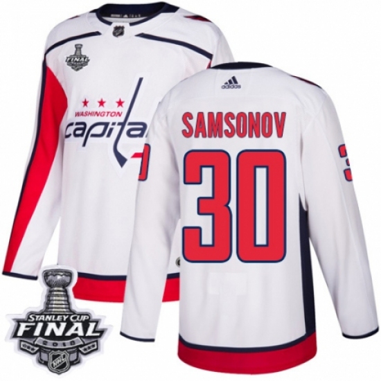 Men's Adidas Washington Capitals #30 Ilya Samsonov Authentic White Away 2018 Stanley Cup Final NHL Jersey