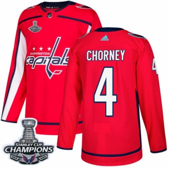 Men's Adidas Washington Capitals #4 Taylor Chorney Authentic Red Home 2018 Stanley Cup Final Champions NHL Jersey