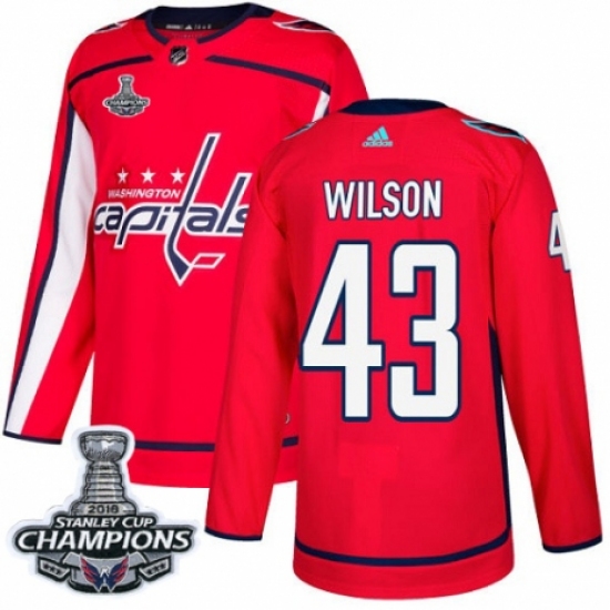 Men's Adidas Washington Capitals #43 Tom Wilson Premier Red Home 2018 Stanley Cup Final Champions NHL Jersey
