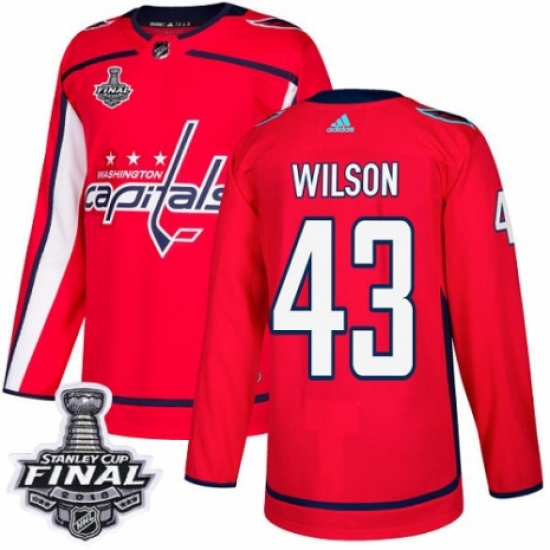 Men's Adidas Washington Capitals #43 Tom Wilson Premier Red Home 2018 Stanley Cup Final NHL Jersey