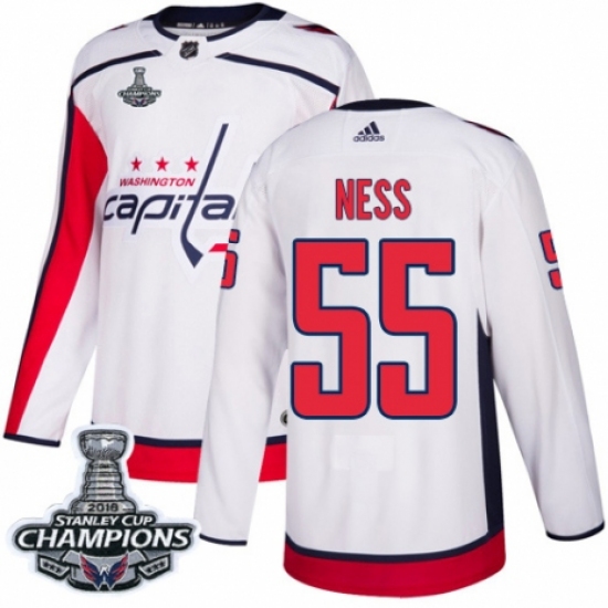 Men's Adidas Washington Capitals #55 Aaron Ness Authentic White Away 2018 Stanley Cup Final Champions NHL Jersey