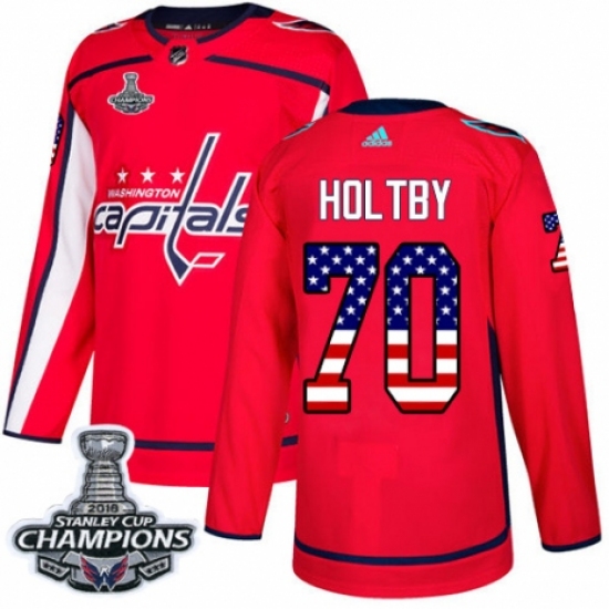 Men's Adidas Washington Capitals #70 Braden Holtby Authentic Red USA Flag Fashion 2018 Stanley Cup Final Champions NHL Jersey