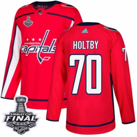Men's Adidas Washington Capitals #70 Braden Holtby Authentic Red Home 2018 Stanley Cup Final NHL Jersey