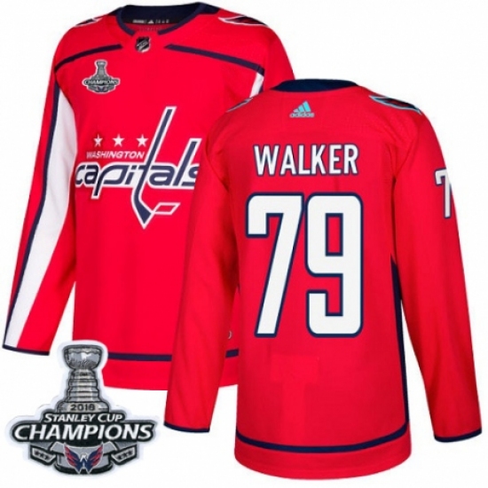 Men's Adidas Washington Capitals #79 Nathan Walker Authentic Red Home 2018 Stanley Cup Final Champions NHL Jersey
