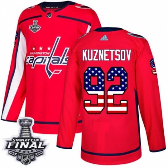 Men's Adidas Washington Capitals #92 Evgeny Kuznetsov Authentic Red USA Flag Fashion 2018 Stanley Cup Final NHL Jersey