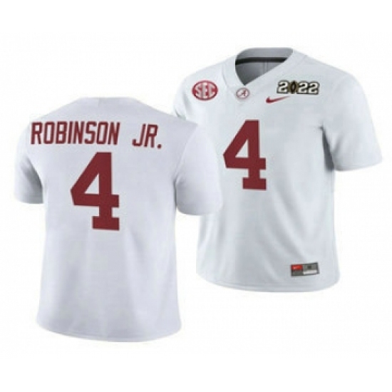 >Men's Alabama Crimson Tide #4 Brian Robinson Jr 2022 Patch White College Football Stitched Jersey