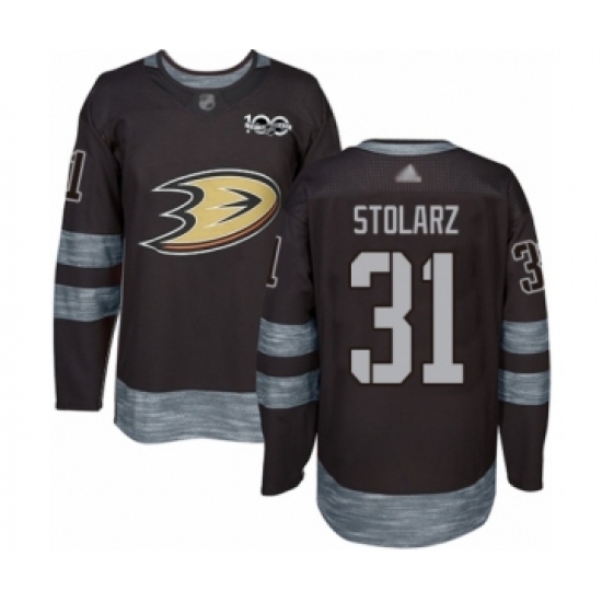 Men's Anaheim Ducks #31 Anthony Stolarz Authentic Black 1917-2017 100th Anniversary Hockey Jersey
