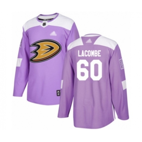 >Men's Anaheim Ducks #60 Jackson Lacombe Authentic Purple Fights Cancer Practice Hockey Jersey
