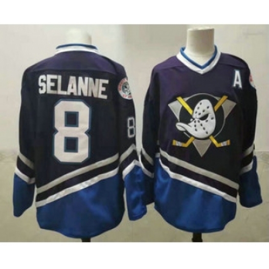 Men's Anaheim Ducks #8 Teemu Selanne 1995-96 Purple CCM Vintage Throwback Jersey