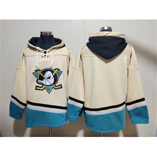 >Men's Anaheim Ducks Blank Cream Ageless Must-Have Lace-Up Pullover Hoodie