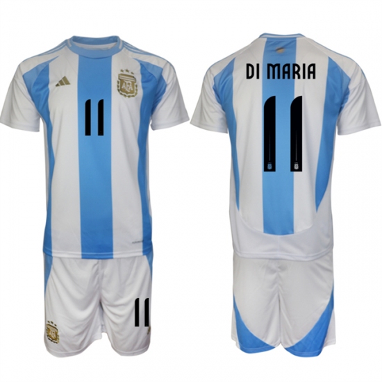 Men's Argentina #11 Di maria White Blue 2024-25 Home Soccer Jersey Suit