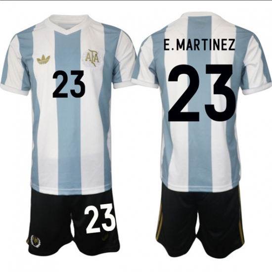 >Men's Argentina #23 Emiliano Martínez White Blue 2024-25 50th Anniversary Home Soccer Jersey Suit