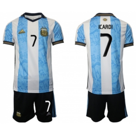 Men's Argentina #7 Icardi White Blue Home Soccer Jersey Suit