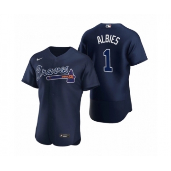Men's Atlanta Braves #1 Ozzie Albies Nike Navy Authentic 2020 Alternate Jerseys