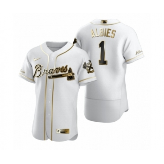 Men's Atlanta Braves #1 Ozzie Albies Nike White Authentic Golden Edition Jersey