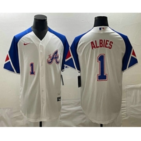 Men's Atlanta Braves #1 Ozzie Albies White 2023 City Connect Flex Base Stitched Baseball Jersey