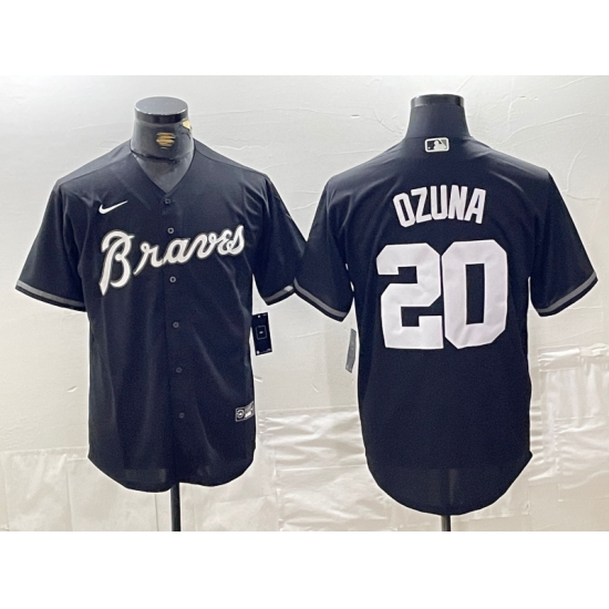 >Men's Atlanta Braves #20 Marcell Ozuna Black Cool Base Stitched Baseball Jersey