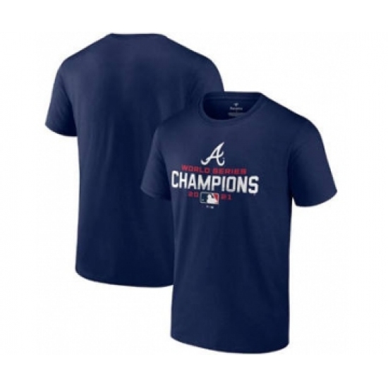 Men's Atlanta Braves #1 Ozzie Albies 2021 Navy World Series Champions Player Name & Number T-Shirt