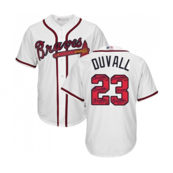 Men's Atlanta Braves #23 Adam Duvall Authentic White Team Logo Fashion Cool Base Baseball Jersey