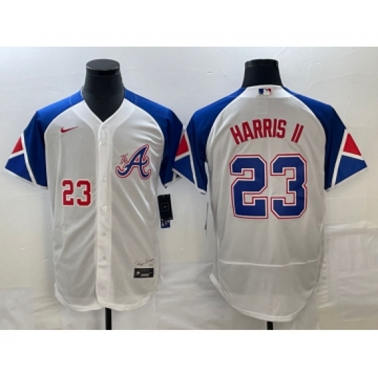 >Men's Atlanta Braves #23 Michael Harris II Number White 2023 City Connect Flex Base Stitched Baseball Jersey