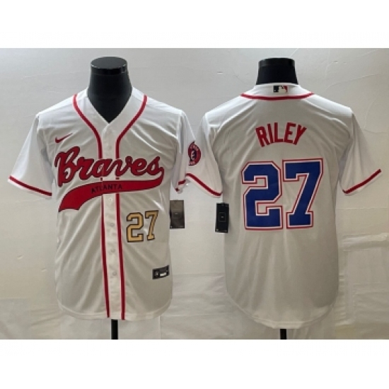 Men's Atlanta Braves #27 Austin Riley White 2022 Gold Program Authentic Player Jersey