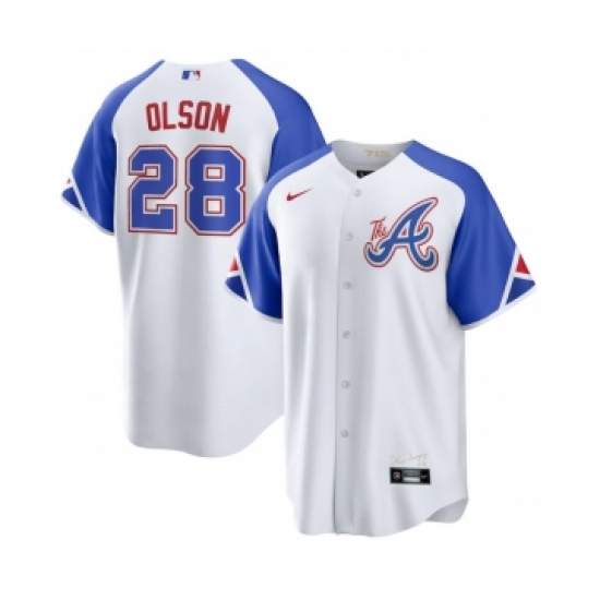 Men's Atlanta Braves #28 Matt Olson White 2023 City Connect Cool Base Stitched Baseball Jersey