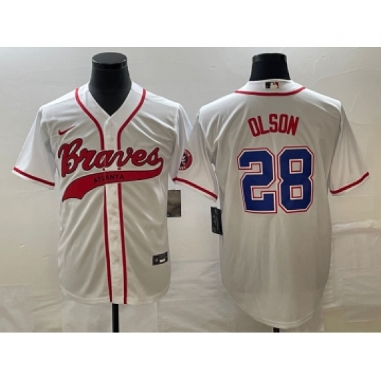 Men's Atlanta Braves #28 Matt Olson White Cool Base Stitched Baseball Jersey