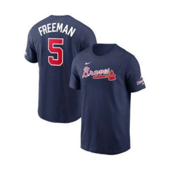 Men's Atlanta Braves #5 Freddie Freeman 2021 Navy World Series Champions Player Name & Number T-Shirt