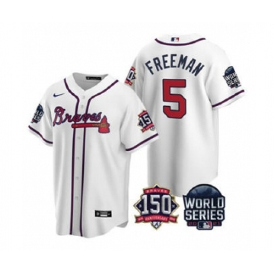 Men's Atlanta Braves #5 Freddie Freeman 2021 White World Series With 150th Anniversary Patch Cool Base Baseball Jersey