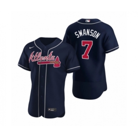 Men's Atlanta Braves #7 Dansby Swanson Nike Navy Authentic 2020 Alternate Jerseys