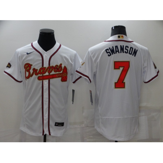 Men's Atlanta Braves #7 Dansby Swanson White 2022 Gold Program Authentic Player Jersey
