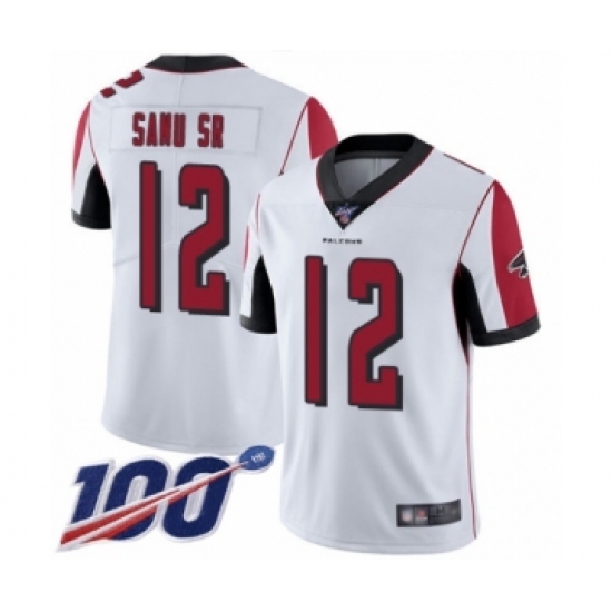 >Men's Atlanta Falcons #12 Mohamed Sanu White Vapor Untouchable Limited Player 100th Season Football Jersey