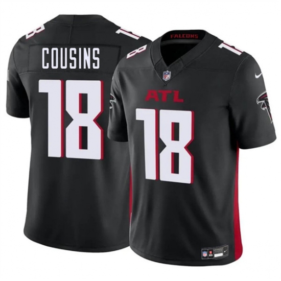 >Men's Atlanta Falcons #18 Kirk Cousins Black 2023 F.U.S.E. Vapor Untouchable Limited Football Stitched Jersey